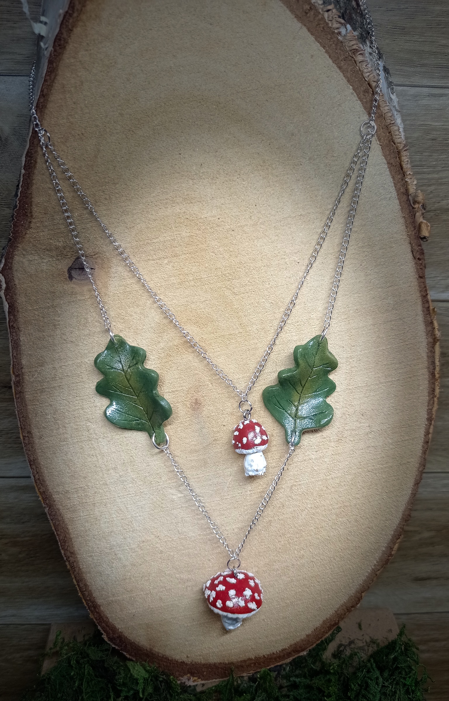 Collier champignons et feuilles de chêne fait main