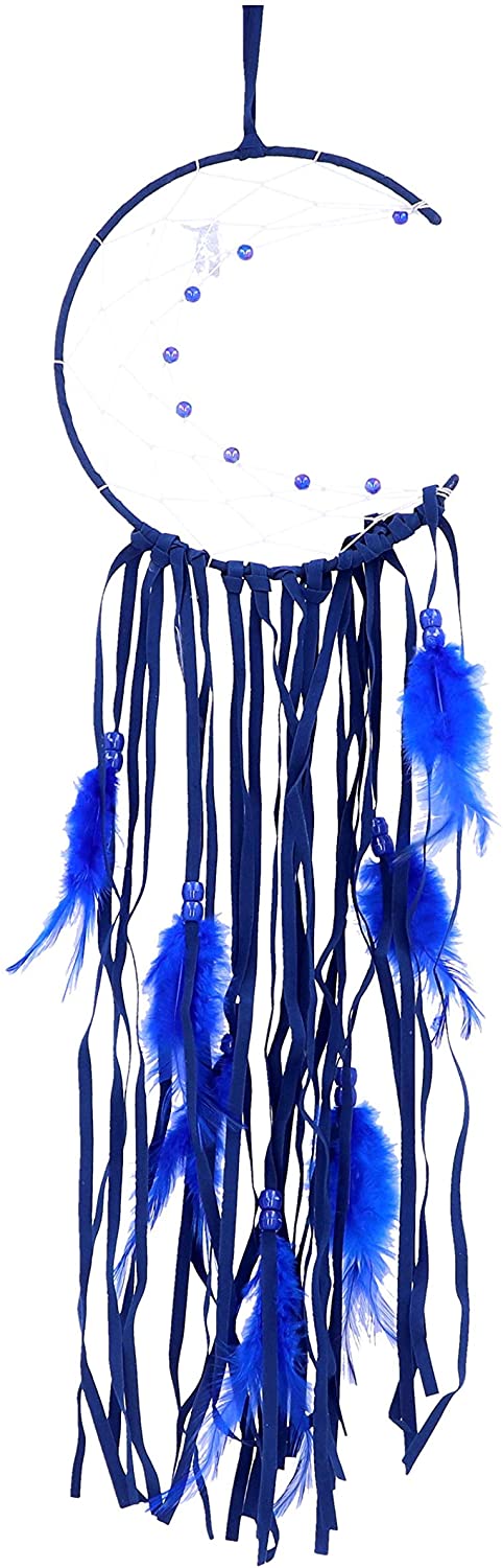 Bel attrape-rêve bleu avec un centre en forme de croissant de lune à suspendre.