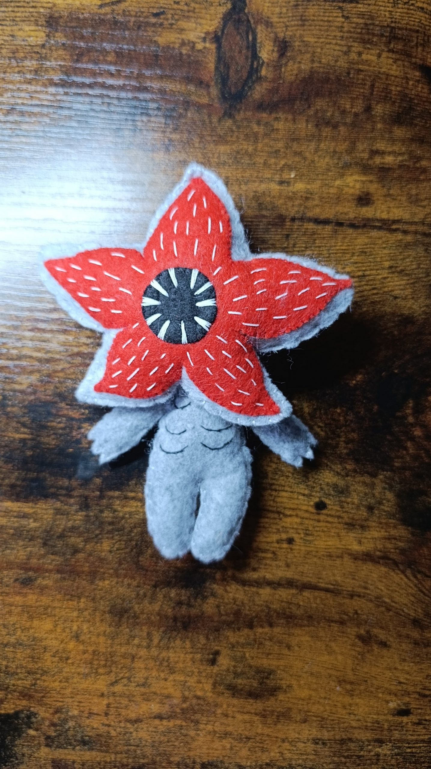 Peluche en feutrine représentant un Demogorgon cousue à la main. Brille dans le noir!