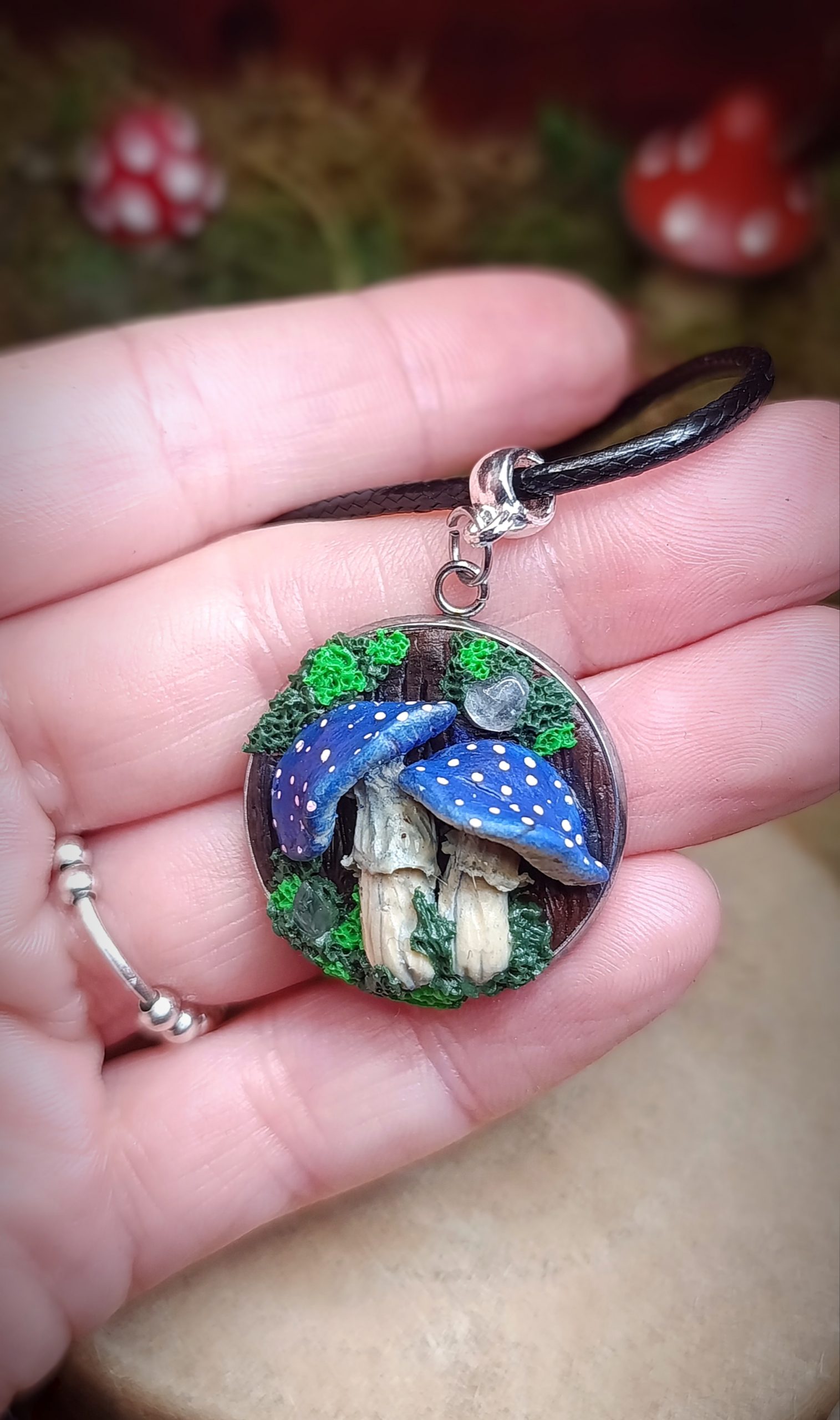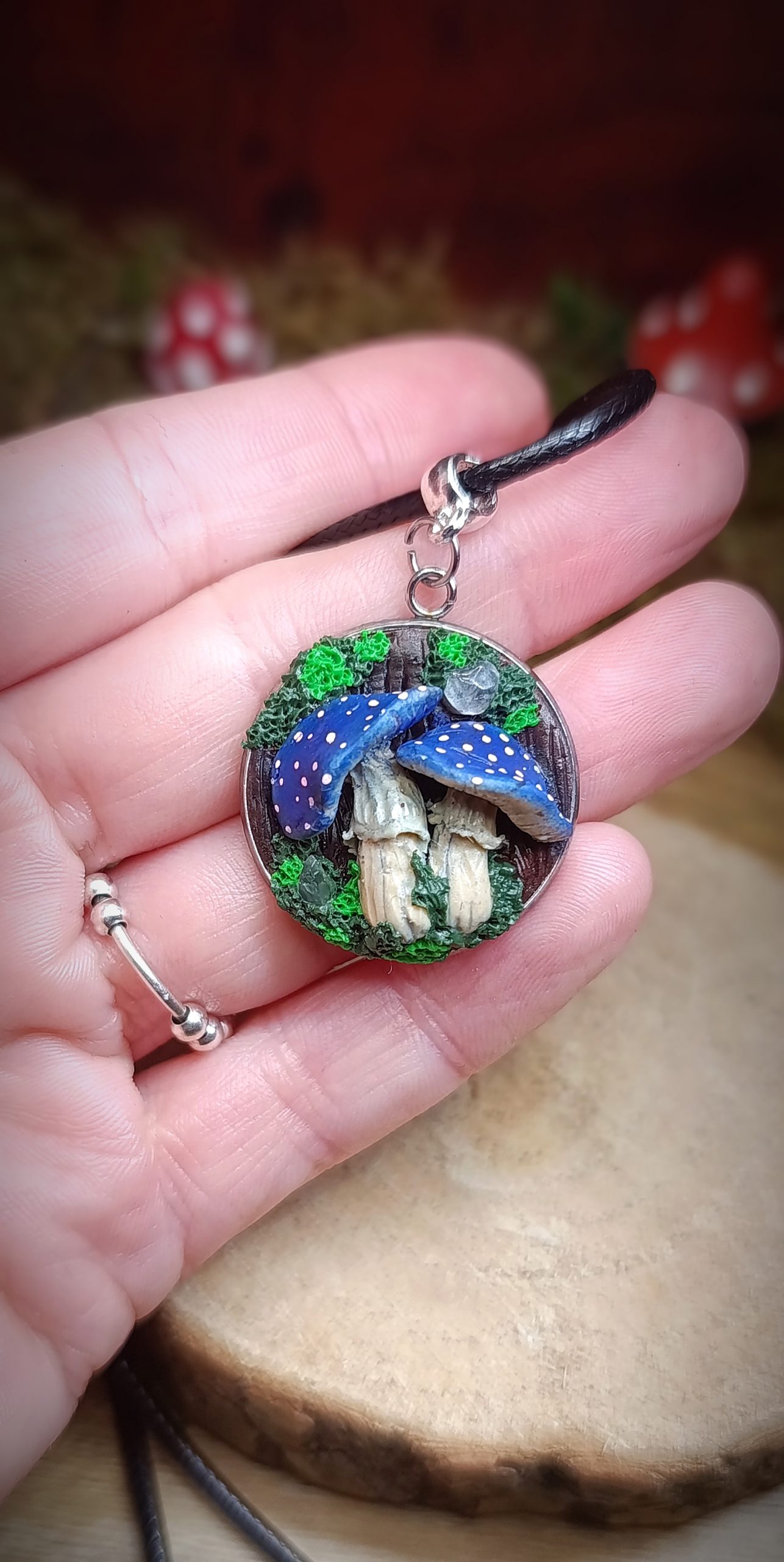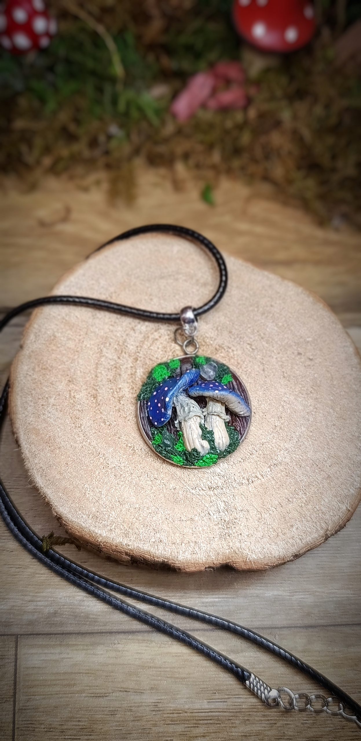 Pendentif entièrement fait main en pâte polymère, inspiré d’un fragment de forêt figé dans le temps.