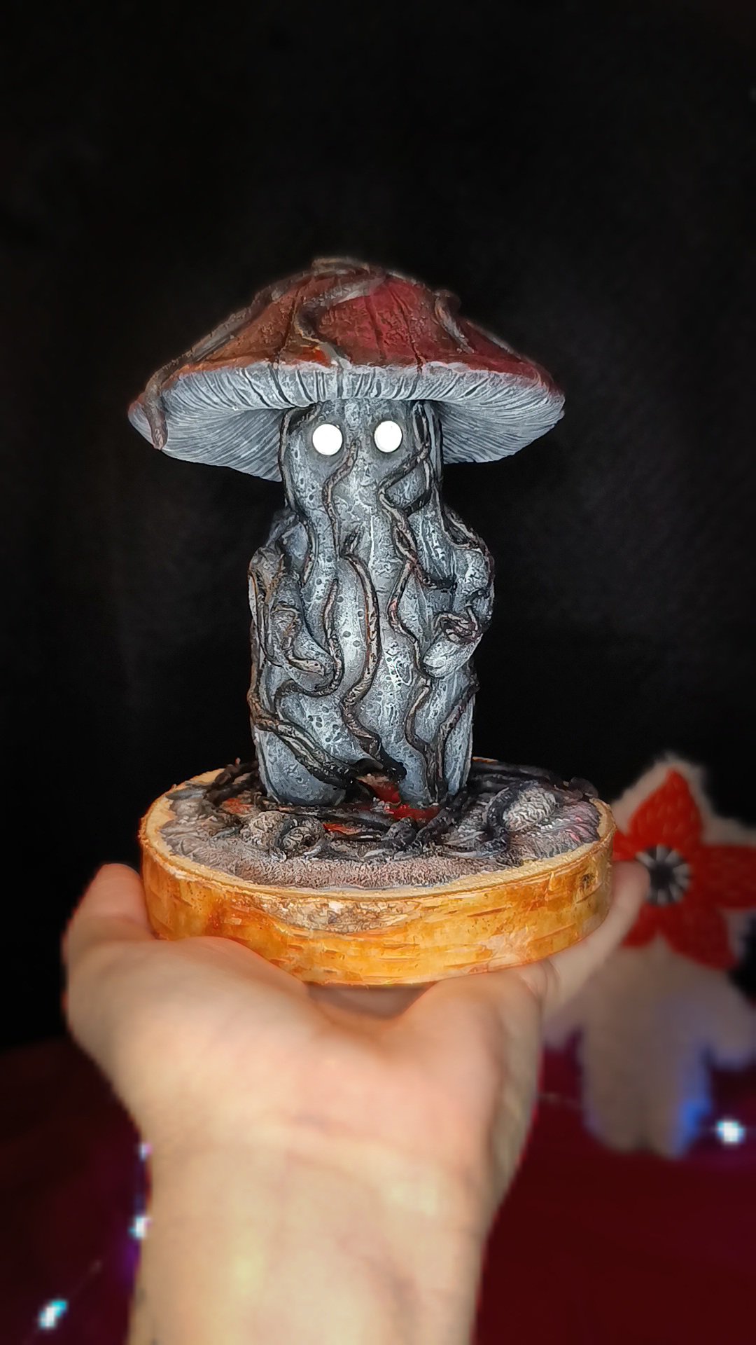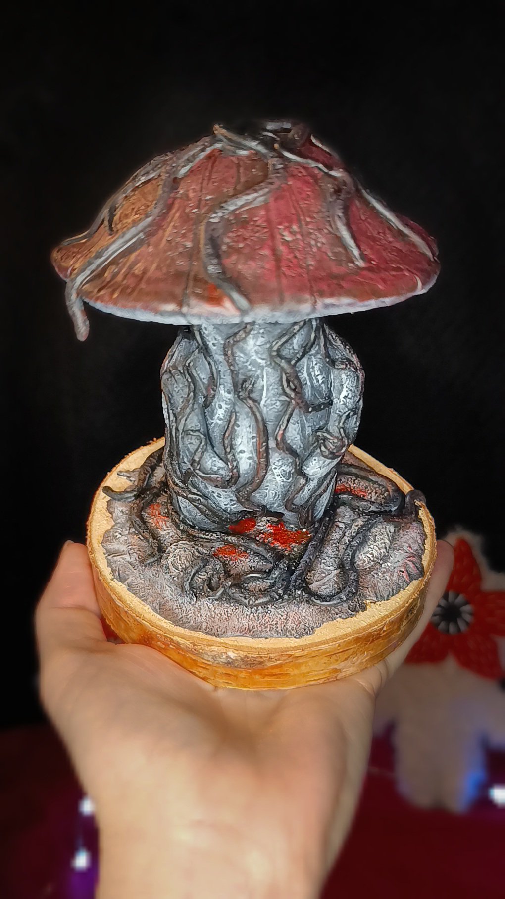 Il repose sur une base en bois naturelle, ce qui en fait une jolie pièce décorative pour les amoureux de fantasy, de curiosités artisanales ou de créations un peu décalées.